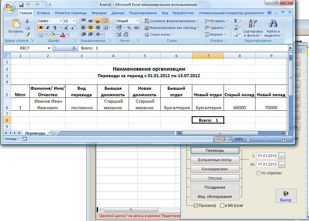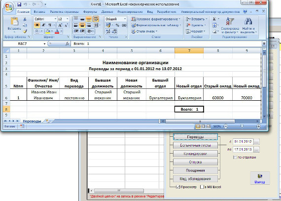 Отчет сформируется в MS Excel (OO Calc).
