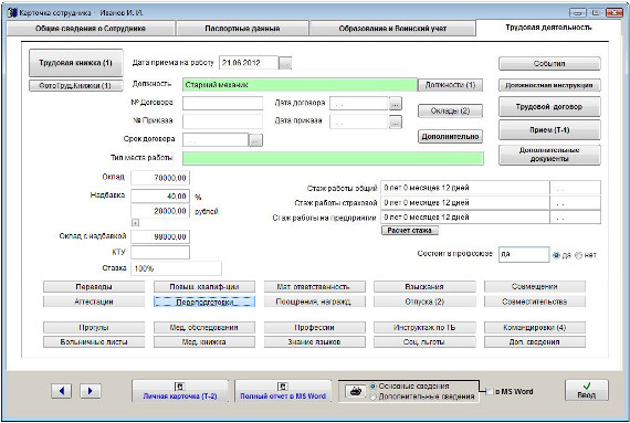 Если установлена опция "Для данного сотрудника", то в MS Word (OO Writer) , будет выведена информация только по данному сотруднику.