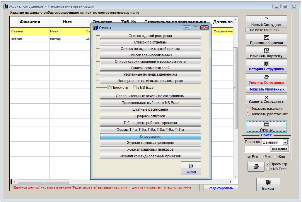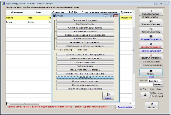 Для этого в журнале сотрудников нажмите кнопку Отчеты.