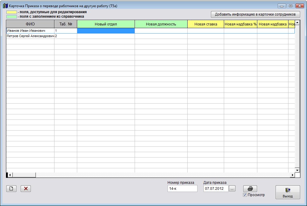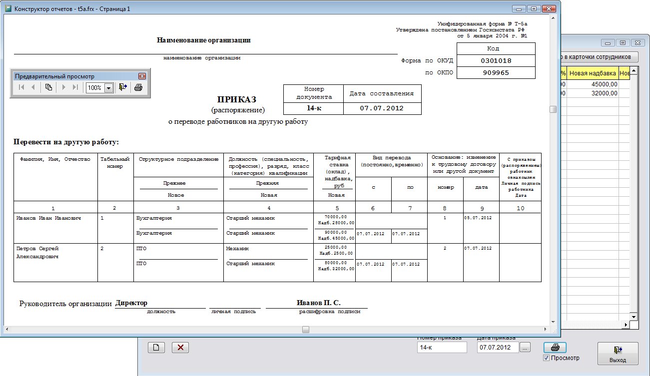 Как распечатать групповой приказ о переводе Т-5а