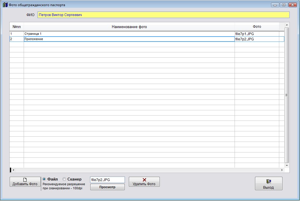 Фото паспорта и заграничного паспорта прикрепляются в закладке "Паспортные данные".