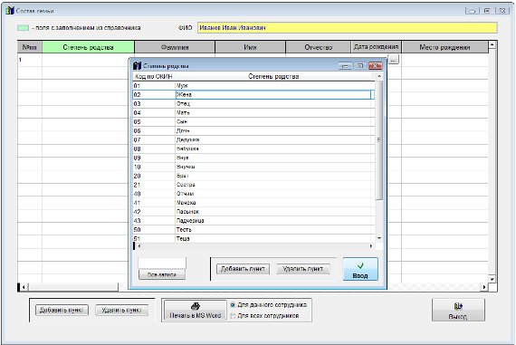 Список родственников сформируется в установленном Microsoft Word либо при соответствующей настройке в OpenOffice Writer.
