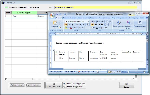 Если установлена опция "Для всех сотрудников", то в MS Word (OO Writer) , будет выведена информация по всем сотрудникам.
