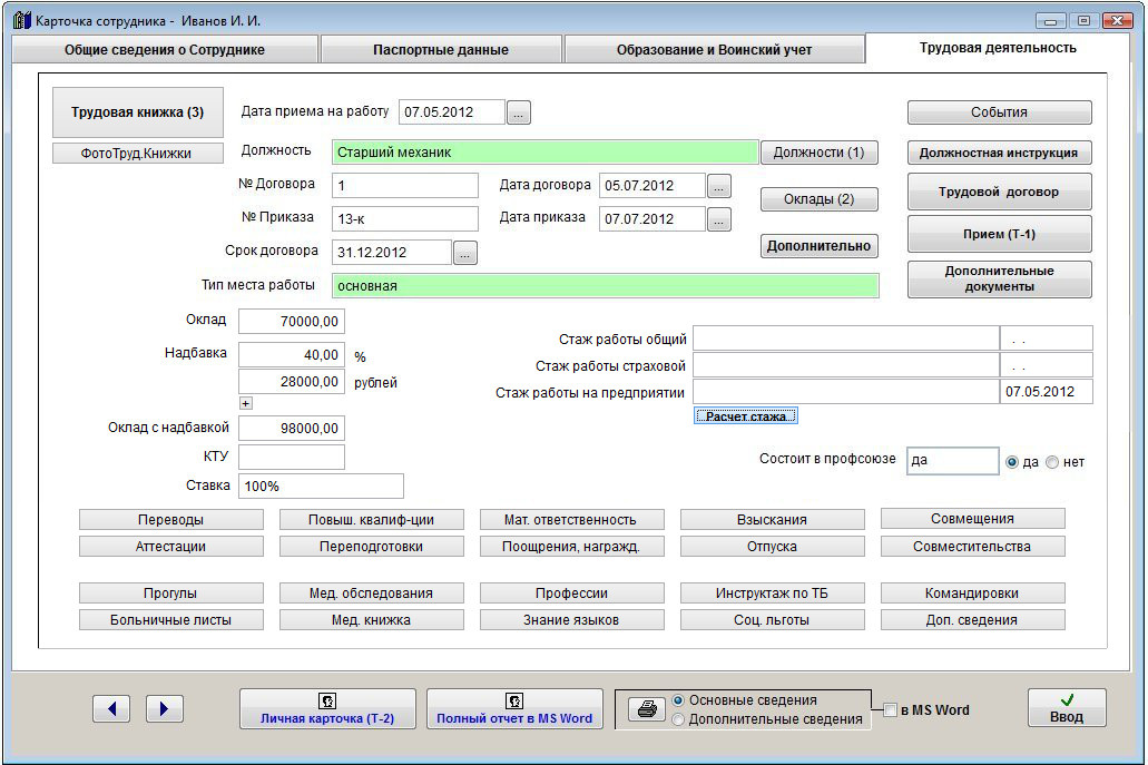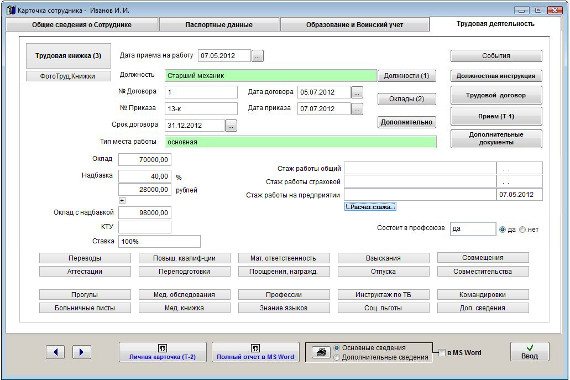 В соответствии с записями трудовой книжки нужно ввести периоды работы (в случае, если были периоды работы на других предприятиях).