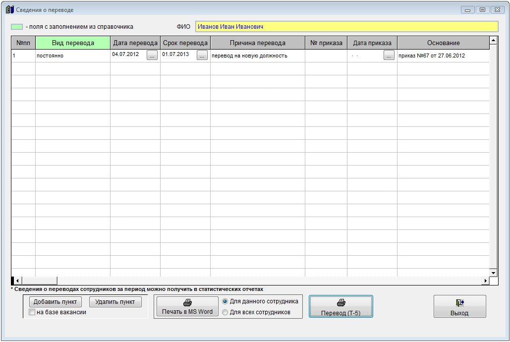 4.12.3.3.20. Как внести переводы сотрудника