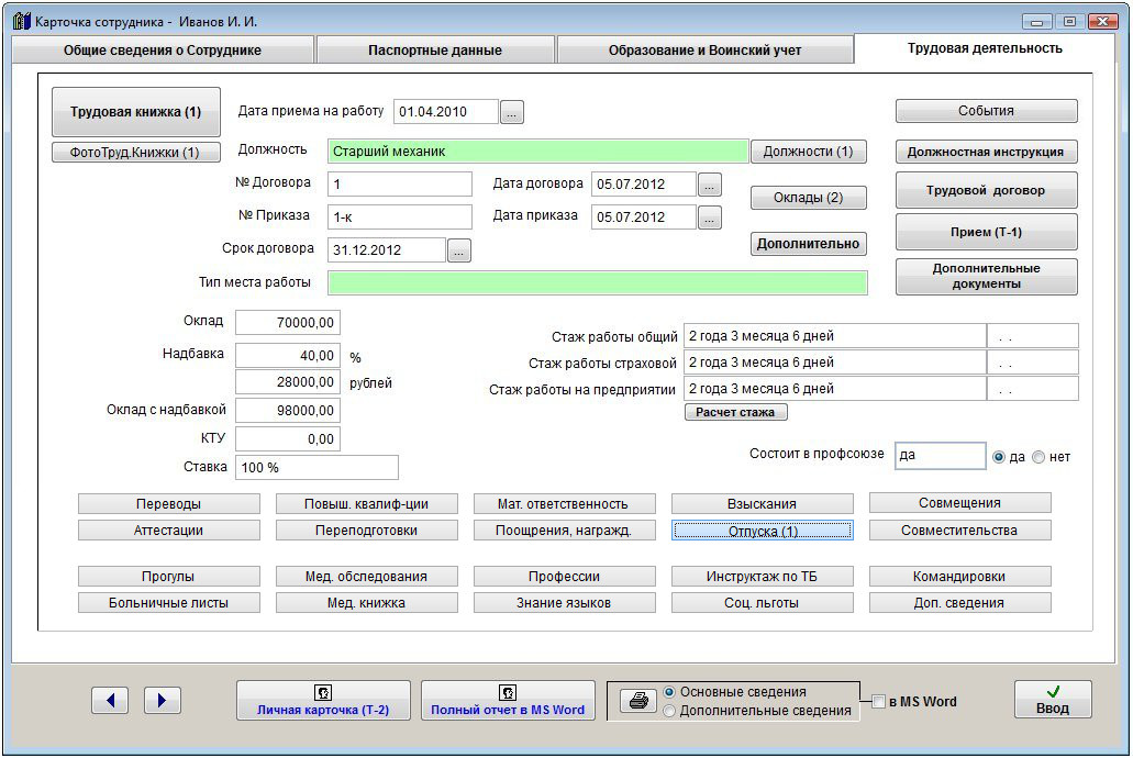 В программе есть возможность формировать приказы в установленном Microsoft Word либо при соответствующей настройке в OpenOffice Writer на базе своих шаблонов.