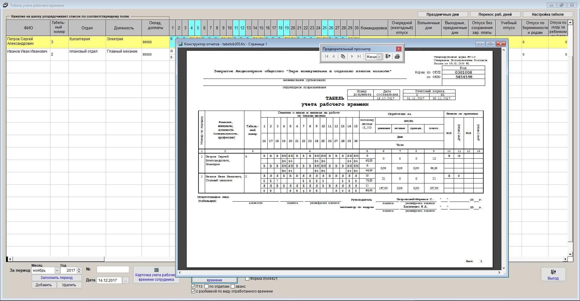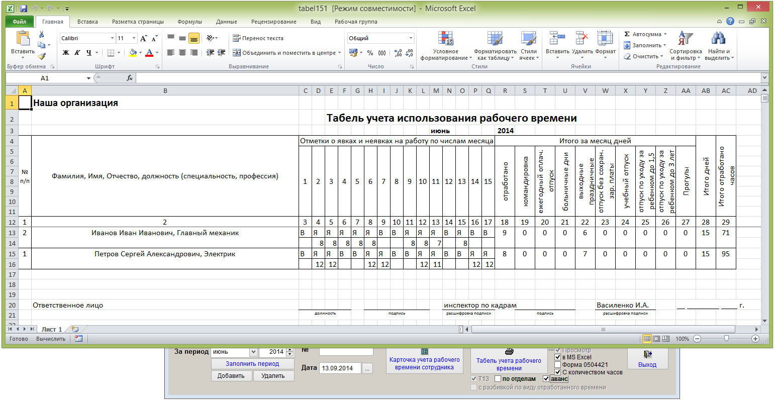 Как заполнить и распечатать табель учета рабочего времени