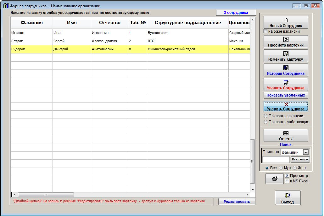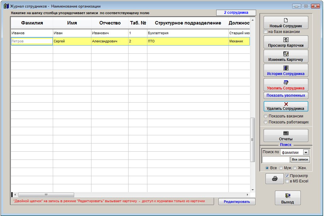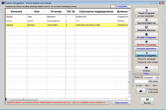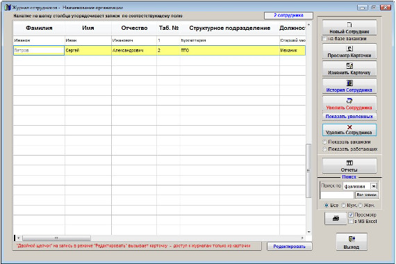 Для удаления сотрудника в журнале выберите нужного сотрудника и нажмите кнопку "Удалить сотрудника" с изображением красного крестика справа от таблицы.