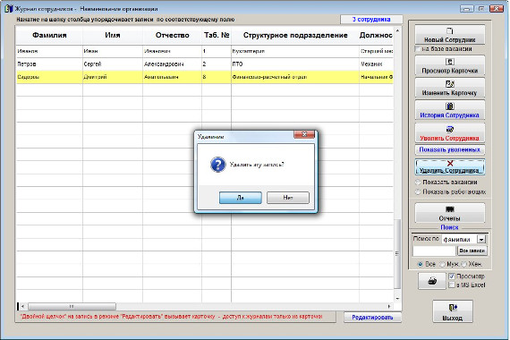 Появится предупреждение с вопросом, хотите-ли Вы удалить сотрудника.