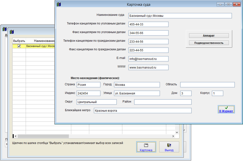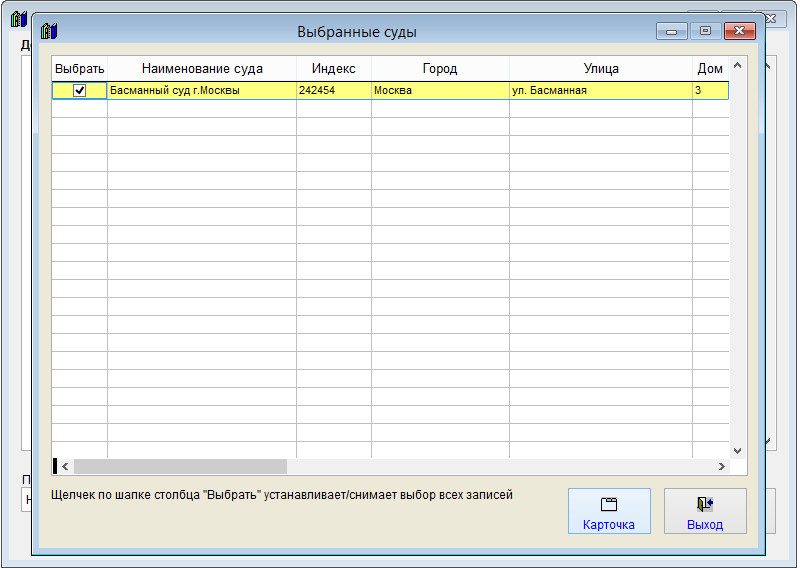 Также из данного раздела можно просмотреть карточку суда, нажав на кнопку "Карточка".