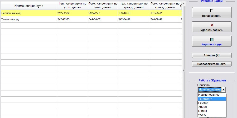 Для поиска суда выберите пункт меню "Справочники-Суды".