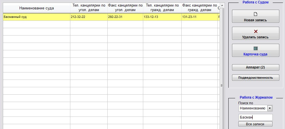 суд, в Наименовании которого есть введенный в поле поиска текст, отобразится в журнале судов.