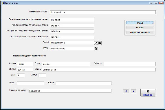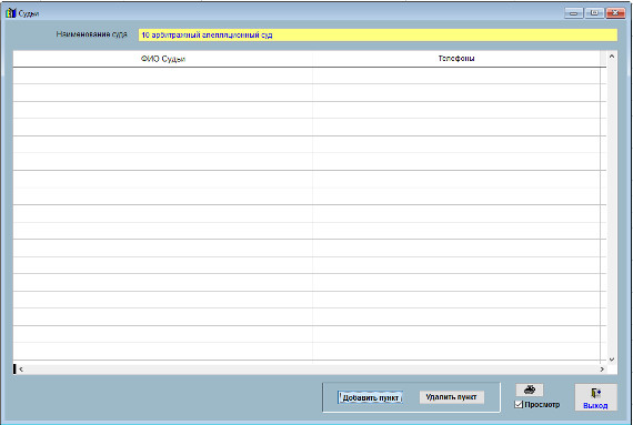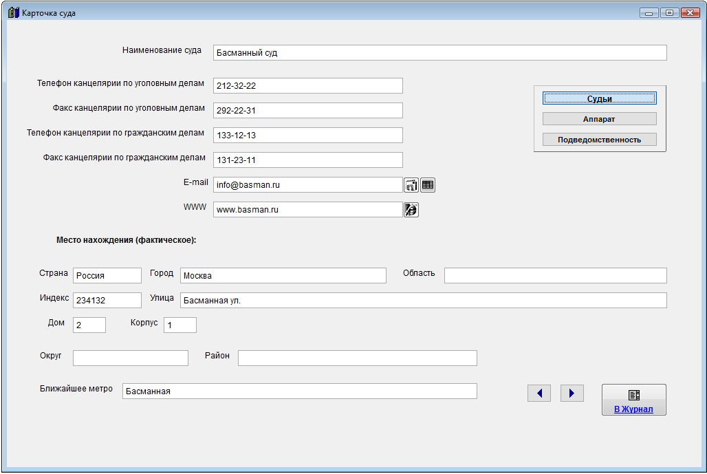 Для внесения информации о судьях в карточке нужного суда нажмите кнопку "Судьи".