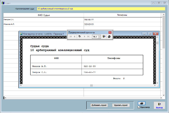 В случае, если галочка "Просмотр" установлена, откроется окно предварительного просмотра - "Конструктор отчетов".