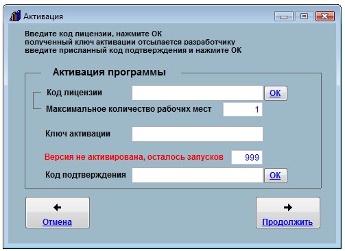 После того, как будет прислан код подтверждения, зайдите в меню "Сервис-Управление лицензиями", нажмите кнопку "Активация", введите код подтверждения в соответствующее окно и нажмите ОК.