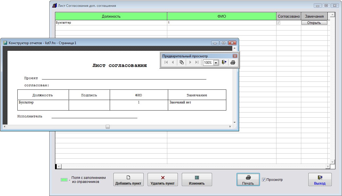 Будет сформирована печатная форма листа согласования по доп. соглашению.