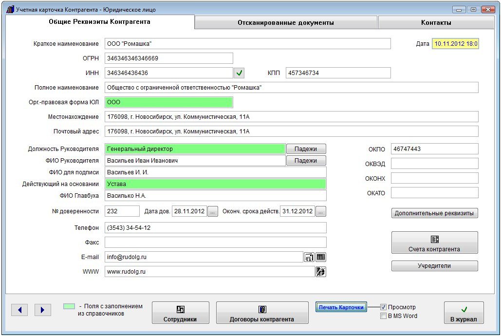 Карточка контрагента будет сформирована в MS Word либо, при соответствующей