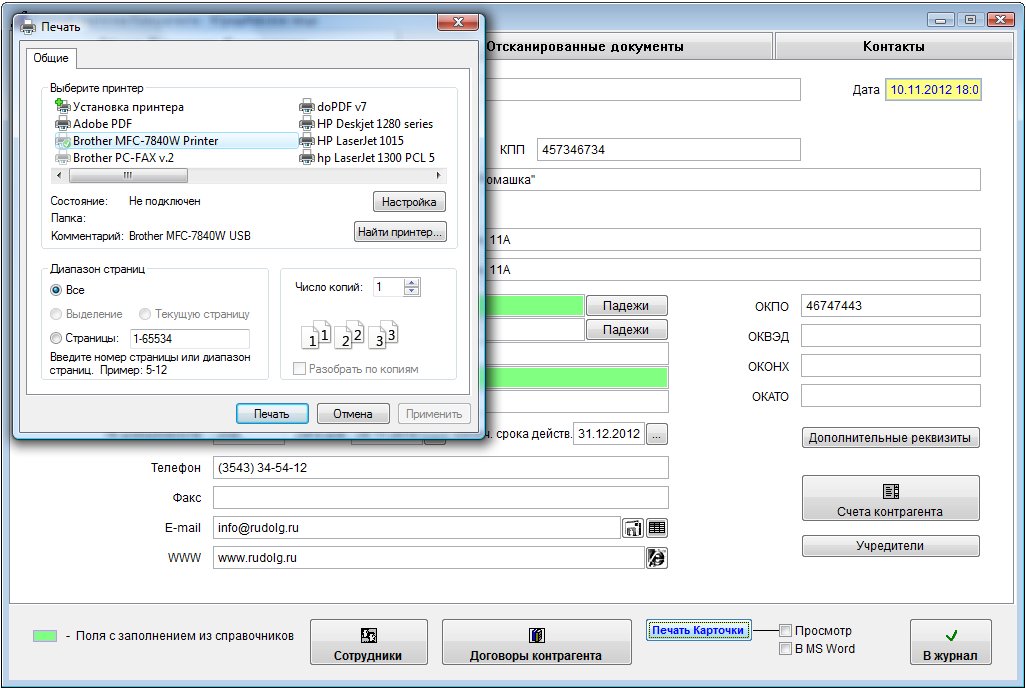 Для вывода журнала контрагентов в установленный Microsoft Word либо, при соответствующей