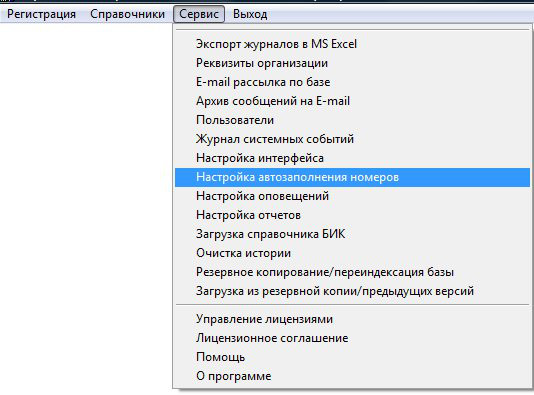 Выберите пункт меню "Сервис-Настройка автозаполнения номеров".