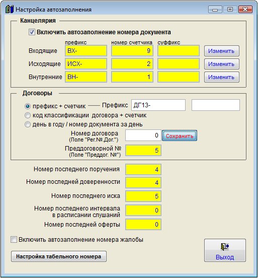 Откроется окно настройки автоматического заполнения номеров.