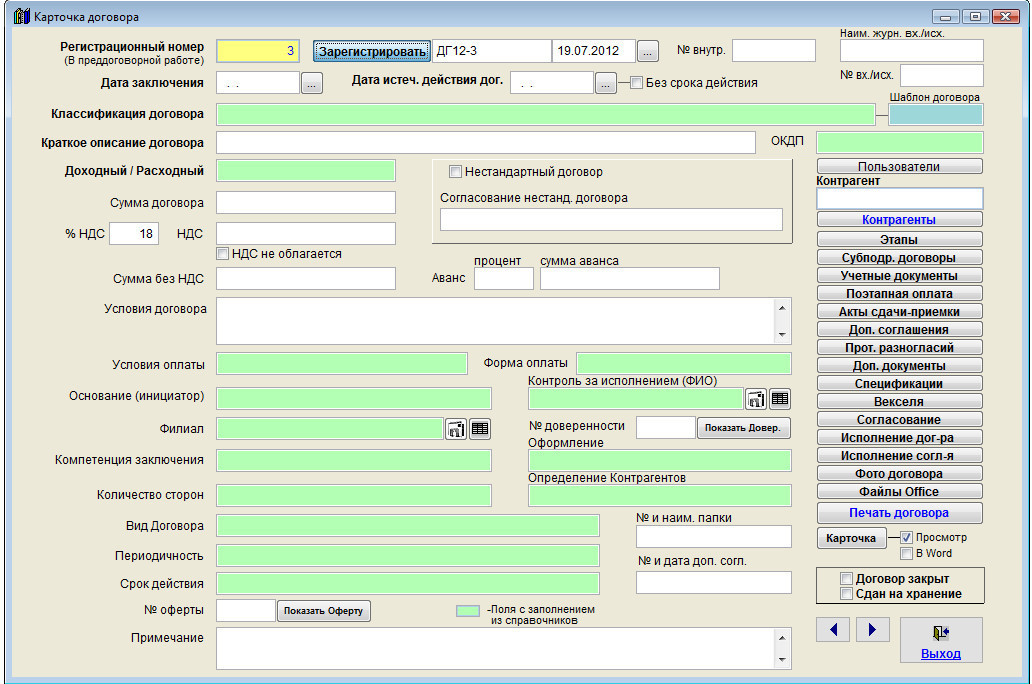 Как настроить формат номера договора, как это принято в Вашем делопроизводстве