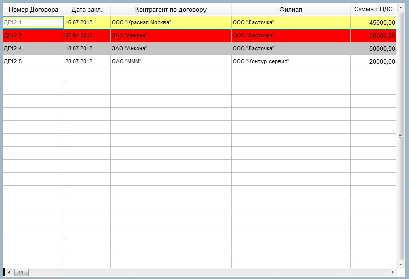Аналогичным образом можно упорядочить записи по следующим столбцам в журнале договоров: