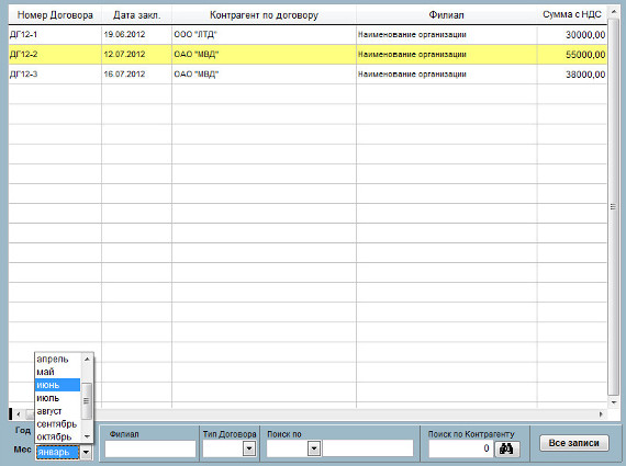 В журнале договоров отобразятся договоры с датой заключения за выбранный месяц выбранного года.
