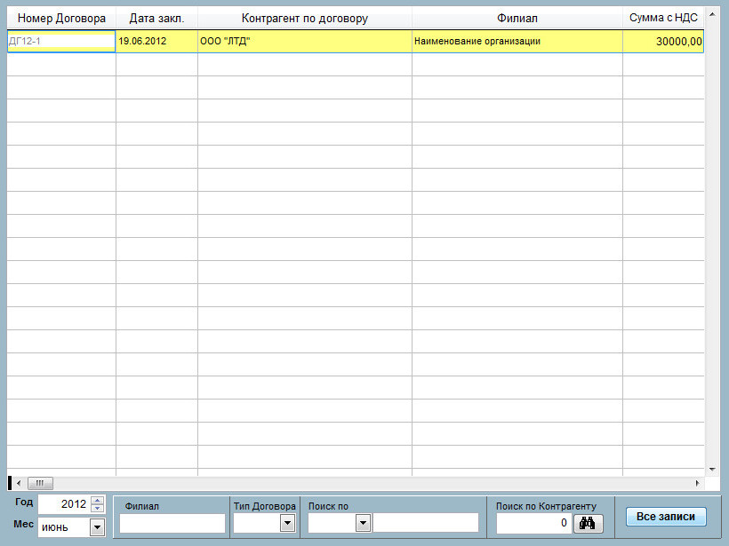 Для отображения всех договоров нажмите кнопку "Все записи"