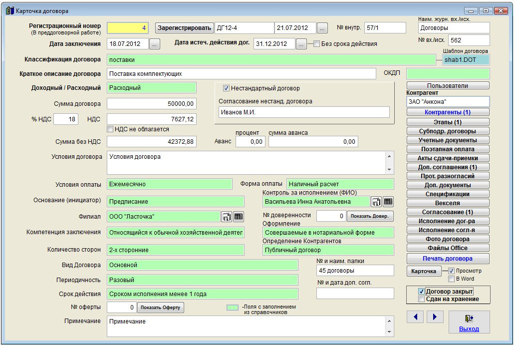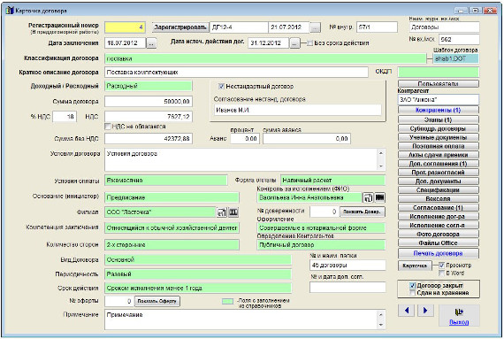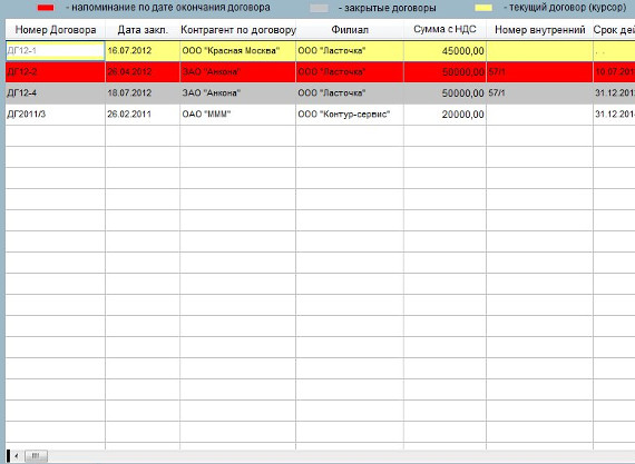 В журнале договоров закрытые договоры окрашиваются серым цветом.