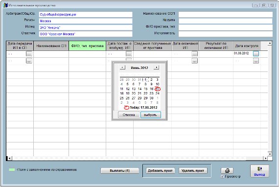 В программе "Юридический офис" есть возможность получать оповещение по исполнительным листам на контроле с просроченной датой контроля.