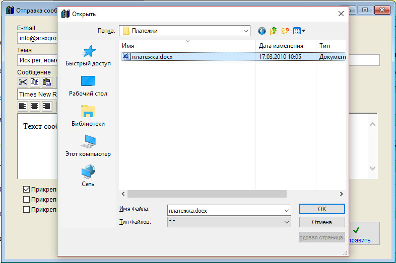 Затем в окне обзора файлов выберите файл, который Вы хотите отправить и нажмите ОК.