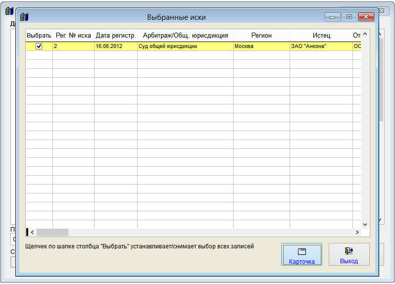 Также из данного раздела можно просмотреть карточку иска, нажав на кнопку "Карточка иска".