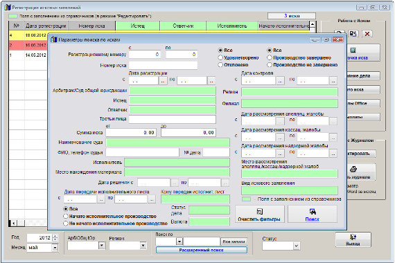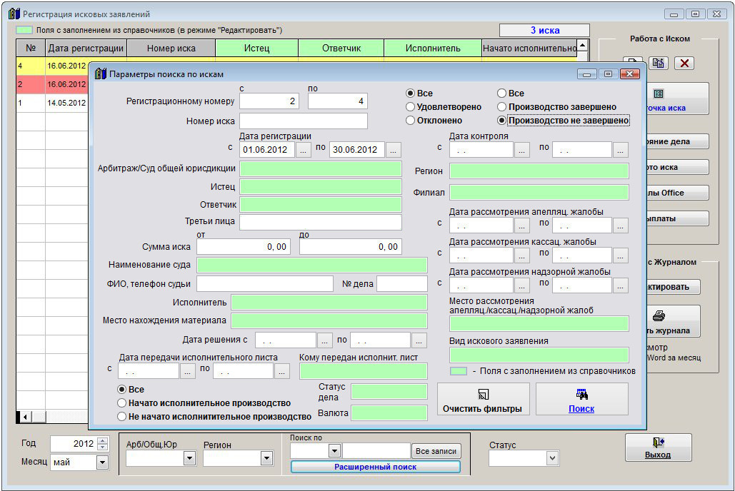 В журнале исков отобразятся только те записи, которые соответствуют критерию поиска.