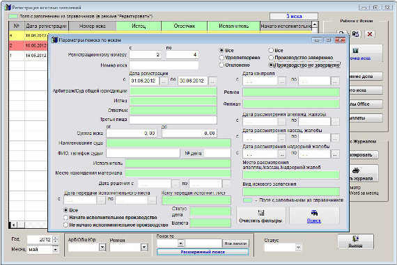 Для поиска одновременно по нескольким параметрам в разделе "Поиск по" под таблицей в журнале исков нажмите кнопку "Расширенный поиск".