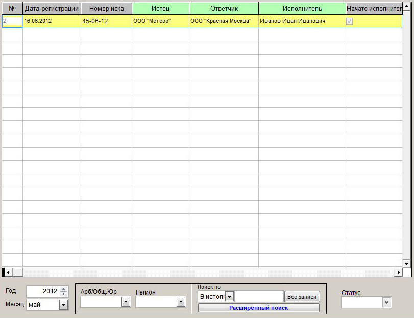 В журнале исков отобразятся только те иски, по которым начато исполнительной производство.