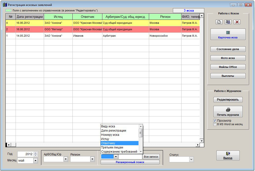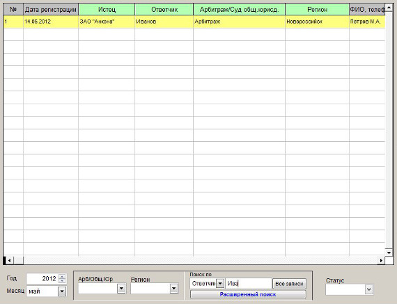 В журнале исков отобразятся только те записи, которые соответствуют критерию поиска.