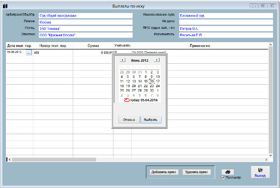 Чтобы учесть выплаты по иску откройте карточку иска.