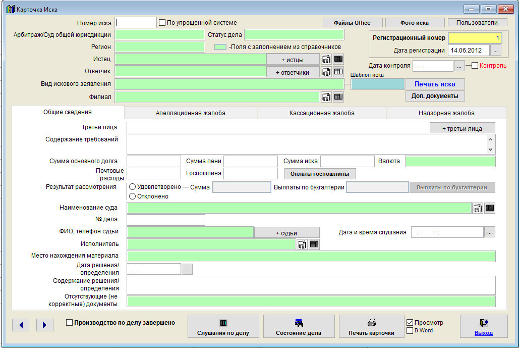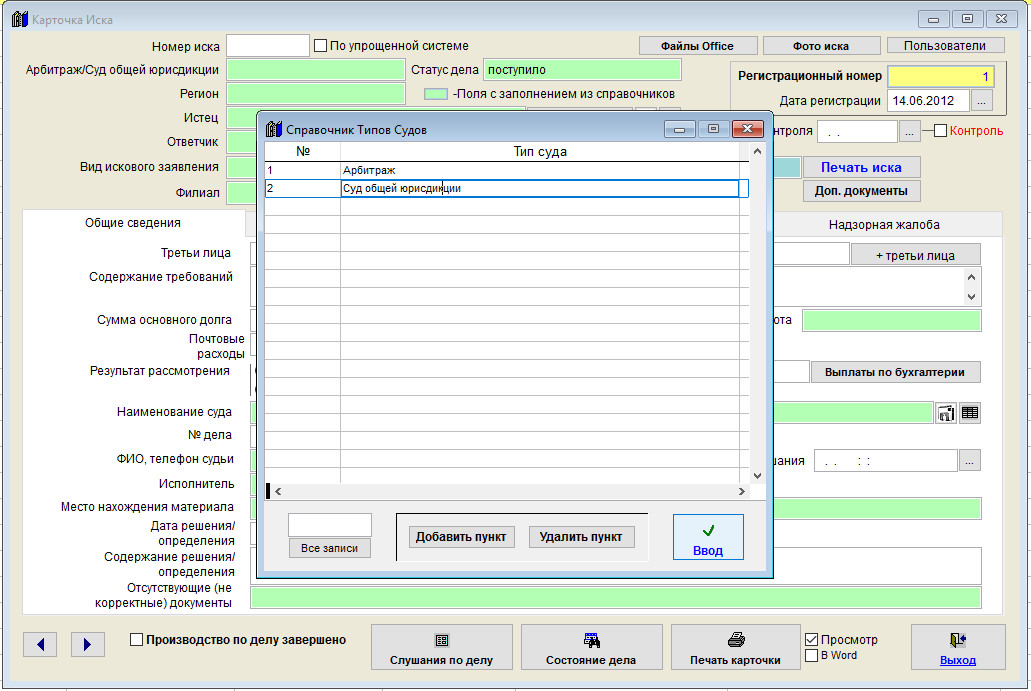 Для заполнения из справочников полей, выделенных соответствующим цветом, дважды щелкните (DblClk) по тому полю, которое требуется заполнить.