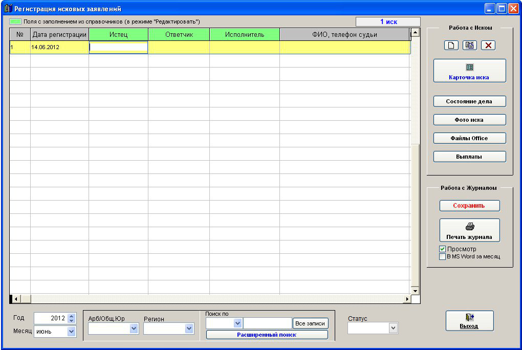 В случае, если поле, заполняемое из справочника, находится в таблице, то шапка соответствующего столбца выделяется цветом.