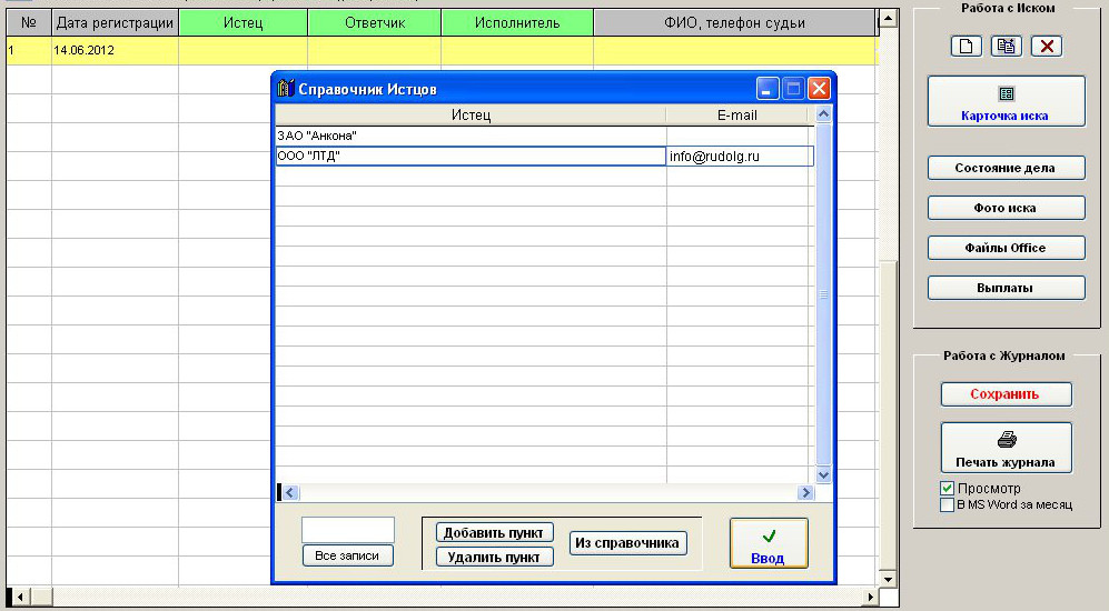 Мышью установите курсор на нужную строку в таблице и нажмите кнопку "Ввод".