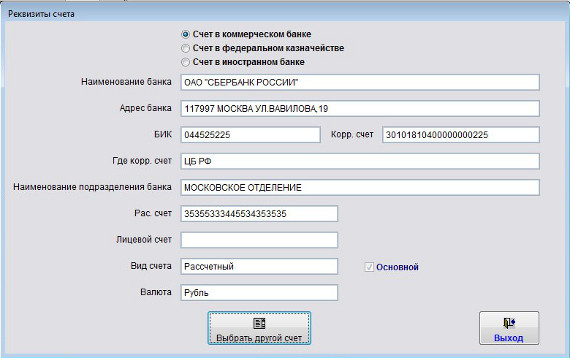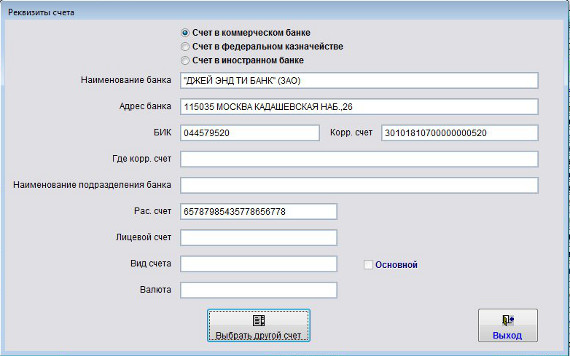 Для изменения реквизитов счета нажмите на кнопку "Выбрать другой счет".