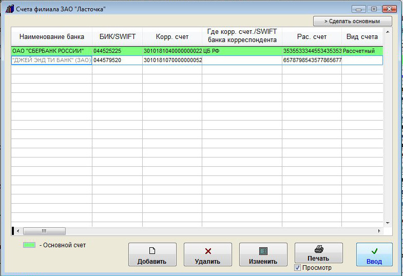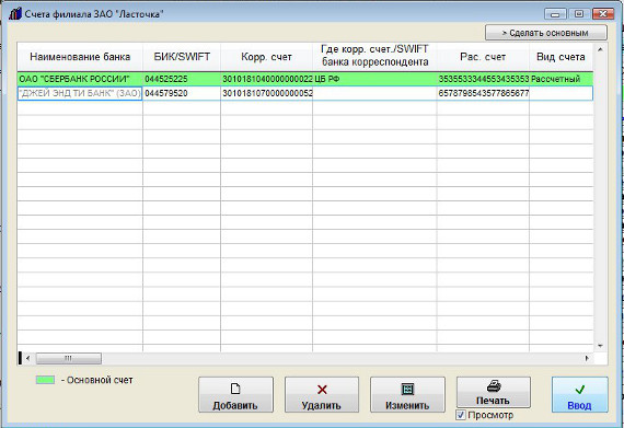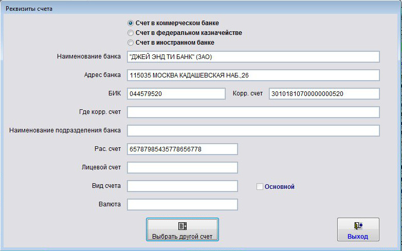 При выборе из справочника контрагентов и филиалов при заполнении карточки договора в качестве банковского счета сторон по договору берется основной счет.