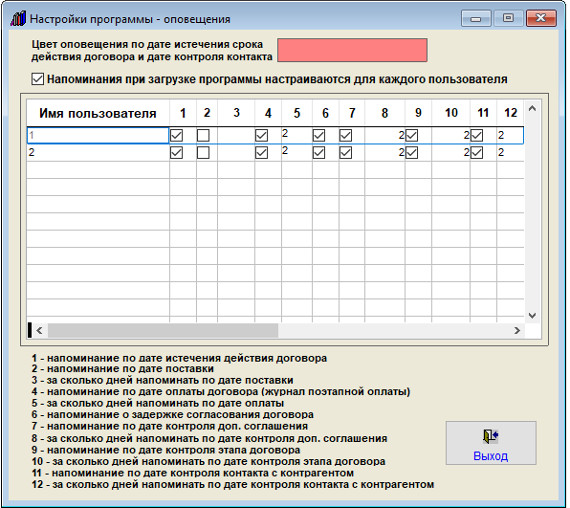 В этом случае включить/отключить напоминания можно будет для каждого пользователя программы.