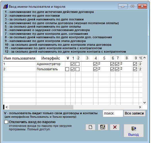 Аналогичная возможность настройки напоминаний для каждого пользователя появится в разделе меню "Сервис-Пользователи".
