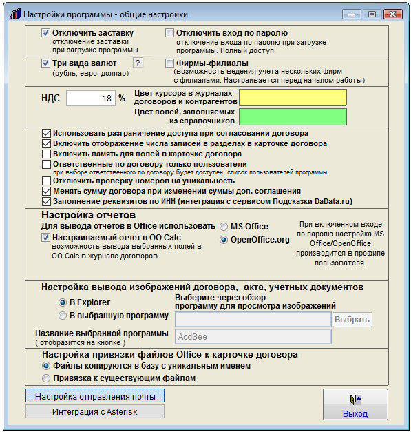 Выберите пункт меню "Сервис-Общие настройки программы", откроется окно настроек программы.