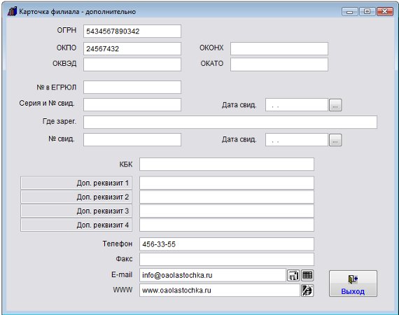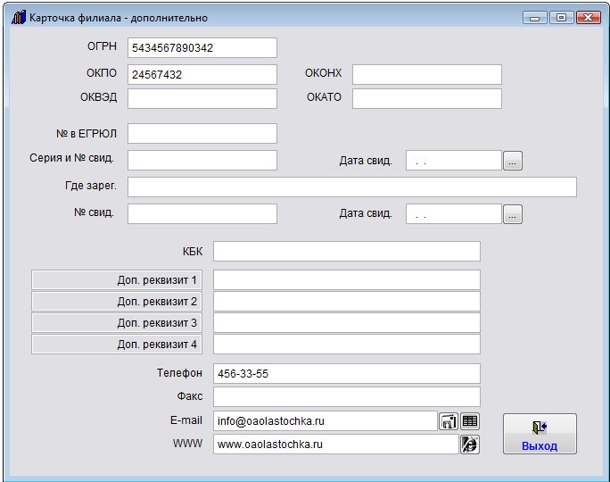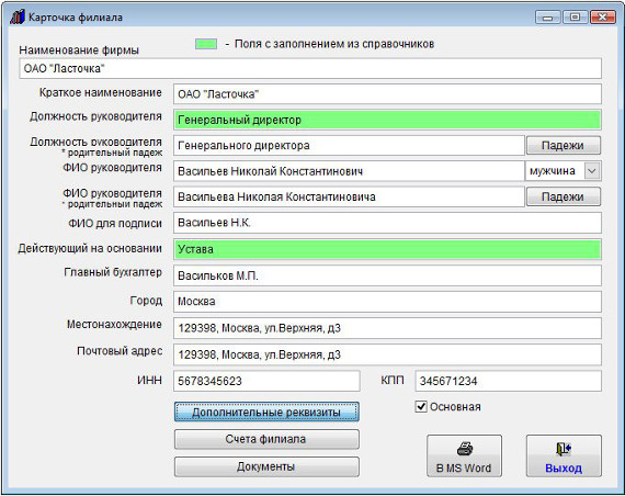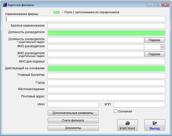 Если установлена галочка "Основная", то краткое наименование данного филиала будет отображаться в шапке отчетов в разделе Выборки и при печати основного журнала в не редактируемой форме.