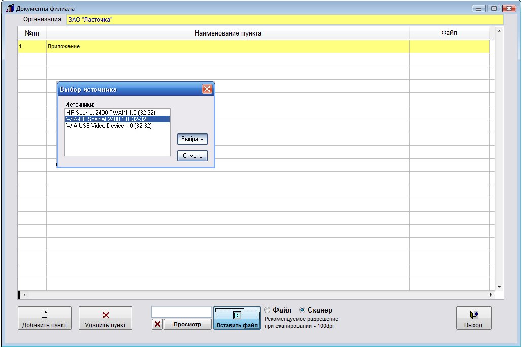 Установите курсор на нужный сканер и нажмите кнопку "Выбрать"