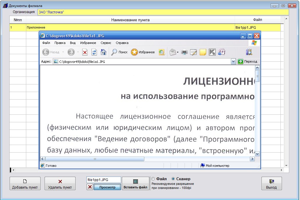 Для просмотра документа нажмите кнопку "Просмотр" рядом с соответствующим полем, документ откроется в том приложении, которое ассоциировано в Windows с данным типом файлов (JPG).