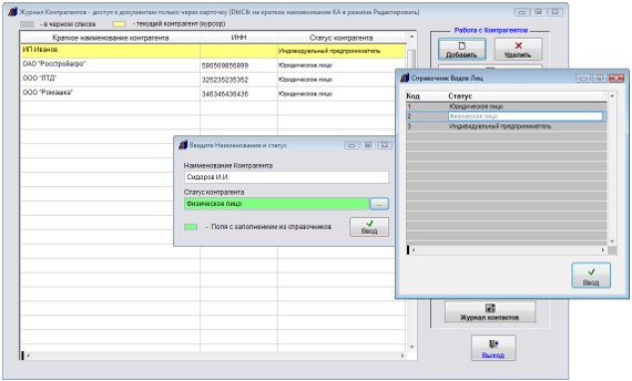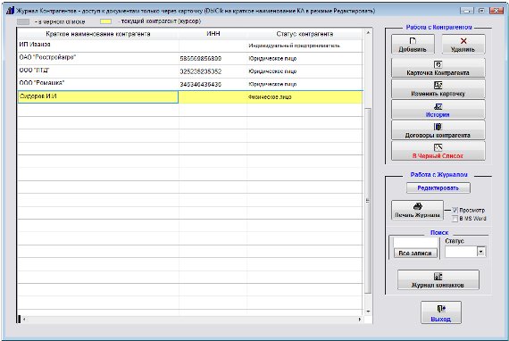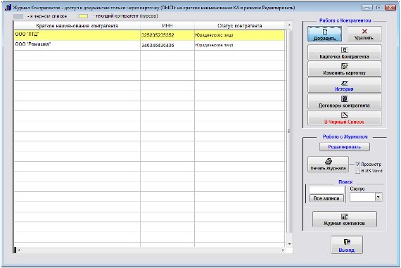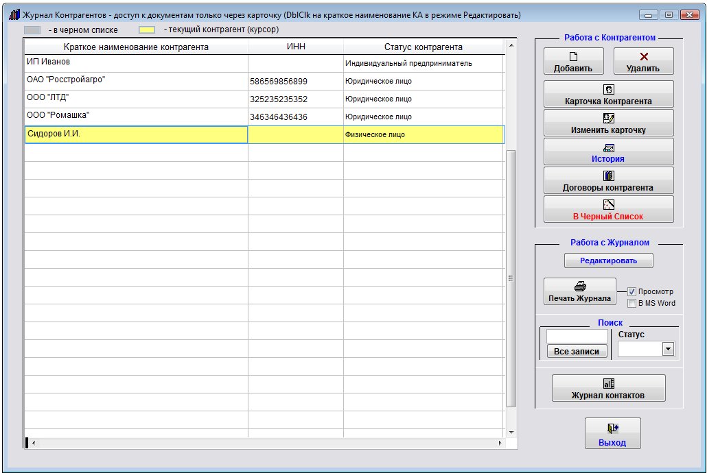 Все добавленные контрагенты отобразятся в журнале контрагентов.