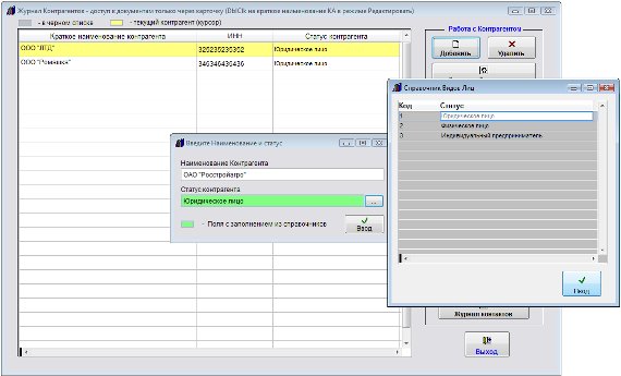 Для ввода контрагента выберите пункт меню "Контрагенты".